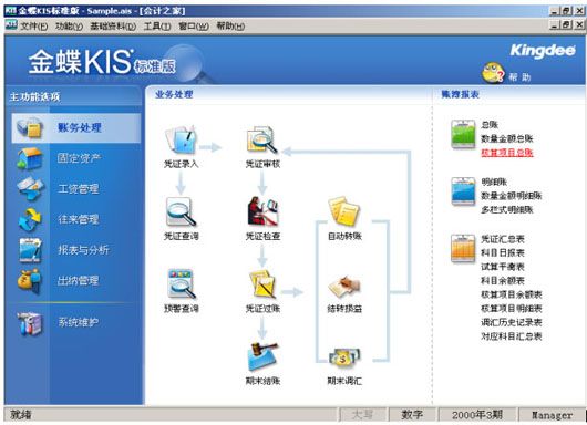 账务处理是KIS的核心模块,主要包括凭证处理、账簿、期末处理等。