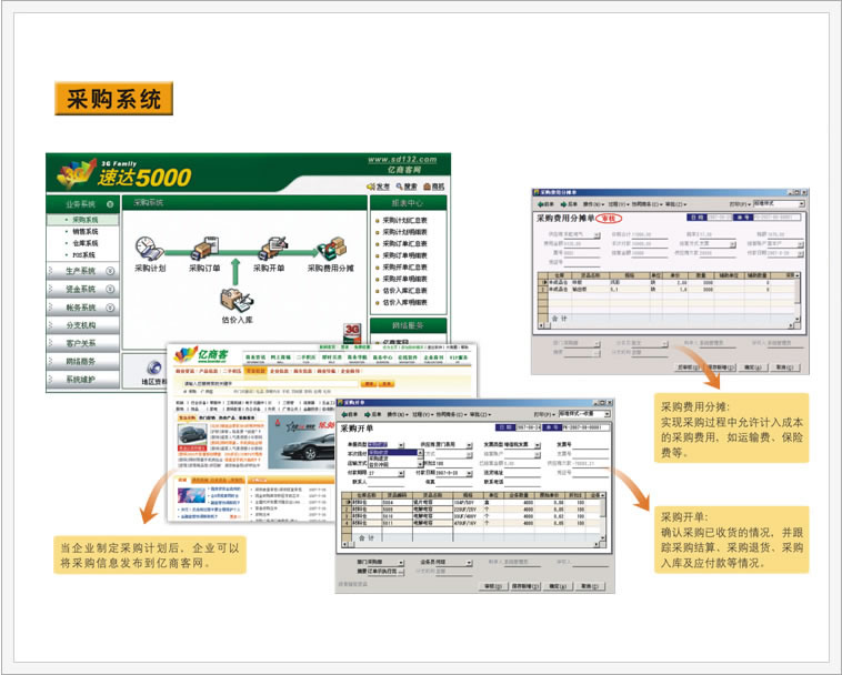 包括采购计划、采购订单、采购开单、估价入库、采购费用分摊五大功能模块;