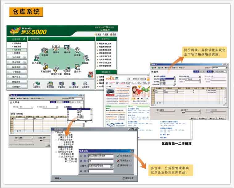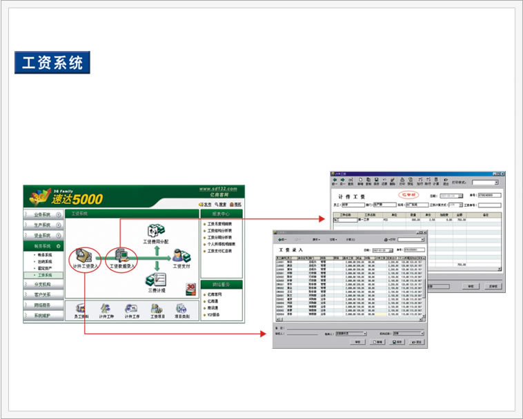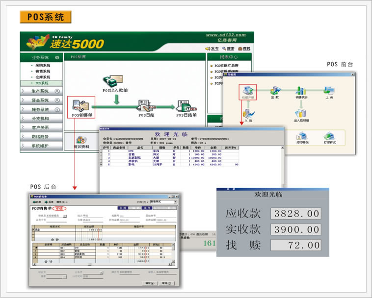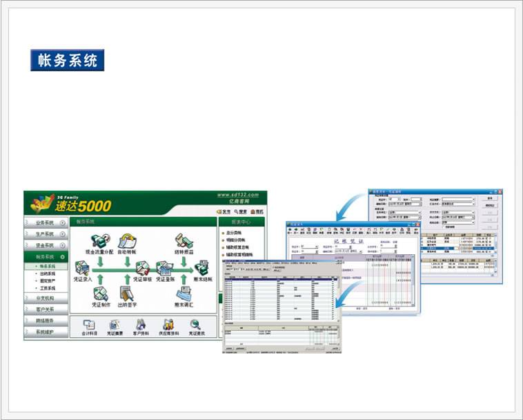 速达5000系列软件集进货、销售、仓库、现金银行、生产、应收应付、固定资产、工资系统、POS销售、出纳管理、账务等诸多管理功能于一身,实现了一体化的链接,大量的工作均可以由系统自动来完成,使操作过程相对简化。