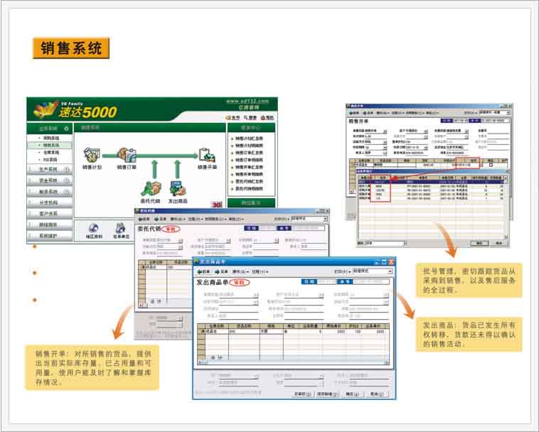 包括销售计划、销售订单、销售开单、委托代销、发出商品等功能模块。