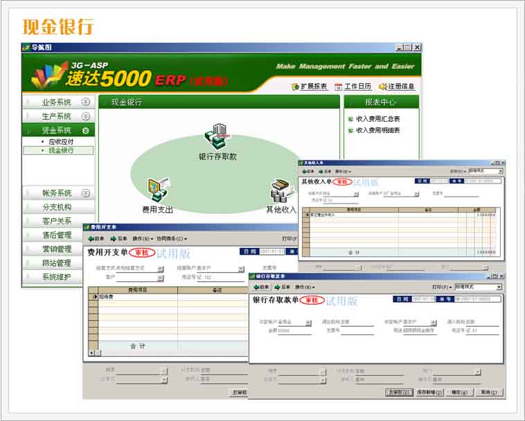 速达5000系列针对国内中型企业,将ERP的精髓与企业管理科学有机的进行结合。系统创新的管理与务实的功能代表了当今国内中型企业ERP的最新方向。